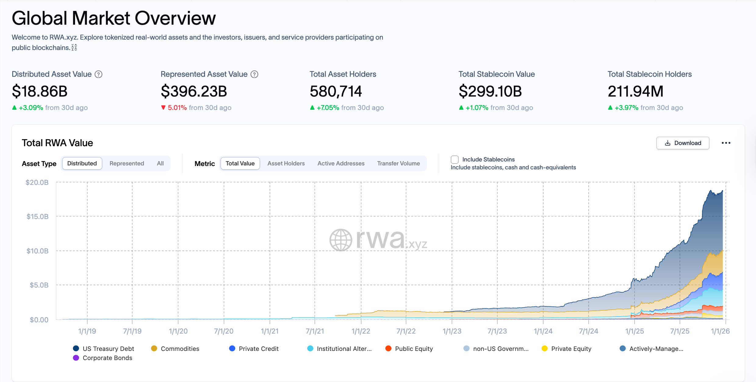 ارزش بازار RWAهای توکنیزه‌شده - منبع: rwa.xyz