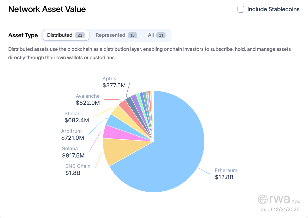 در حوزه توکنیزاسیون RWAها، اکثر دارایی‌ها اتریوم را به‌عنوان مقصد خود انتخاب می‌کنند - منبع: rwa.xyz
