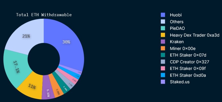 شرکت نانسن نیز در گزارشی به تفکیک اتریوم قابل برداشت از طریق صرافیها و یا پلتفرمهای مختلف پرداخت که بر اساس آن، صرافی هوبی با ۳۰٪ در رده اول و پلتفرم غیرمتمرکز PieDAO با ۱۷.۷٪ در رتبه بعدی قرار دارد.
