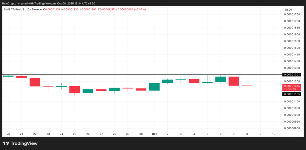 دادهها نشان میدهد که شیبا اینو طی هفته گذشته تقریباً بدون تغییر معامله شده و برخلاف حرکت صعودی بازار، در محدودهای فشرده درجا میزند. در نمودار یکروزه این توکن، مقاومت اصلی در سطح ۰.۰۰۰۰۱۳۰۱ دلار قرار دارد، در حالی که محدوده حمایتی فعلی در ۰.۰۰۰۰۱۱۵۵ دلار شکل گرفته است.