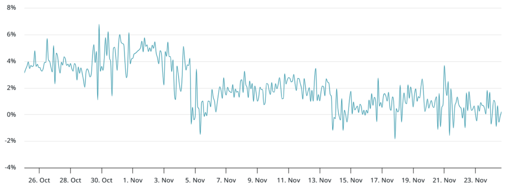 پس از تعطیلی ۴۳ روزه دولت آمریکا، شرکتهای مصرفی بزرگی مانند تارگت (Target)، هومدیپو (Home Depot) و مکدونالد (McDonald’s) پیشبینی فروش خود را کاهش دادند. از سوی دیگر، لغو انتشار شاخص قیمت مصرفکننده (CPI) ماه اکتبر و دادههای نرخ بیکاری نیز باعث شد معاملهگران تصویر روشنتری از تصمیمگیری فدرال رزرو در تاریخ ۱۰ دسامبر در اختیار نداشته باشند.