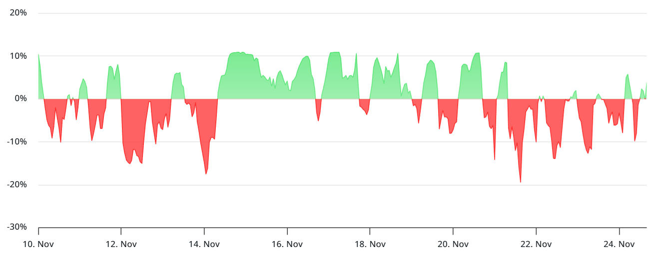 تقاضا برای اخذ موقعیتهای فروش اهرمی روی قراردادهای دائمی SOL از روز جمعه افزایش یافته است؛ بهطوریکه فاندینگ ریت منفی شده و معاملهگران حاضرند برای حفظ پوزیشنهایی که از ریزش بیشتر قیمت سود میبرند، هزینه پرداخت کنند. در شرایط عادی، این نرخ معمولاً بین ۶٪ تا ۱۲٪ نوسان دارد و بیانگر هزینه فرصت در بازار است.