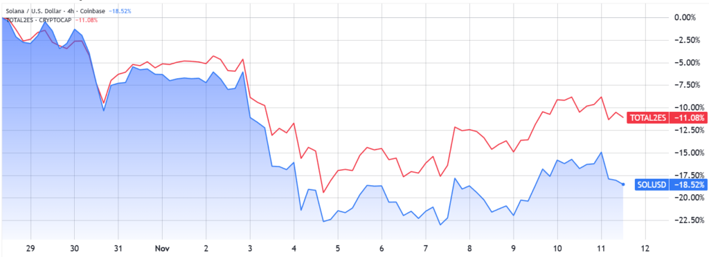 در دو هفته اخیر، عملکرد قیمت سولانا حدود ۷٪ پایینتر از میانگین آلت کوینها بوده است، آن هم بدون اینکه هیچ عامل کاهشی واضح وجود داشته باشد. این در حالی است که محیط کلی بازار برای سولانا مساعد به نظر میرسد. عرضه صندوق ETF اسپات سولانا در بازار آمریکا و رشد محسوس فعالیت کاربران آنچین این شبکه از جمله نشانههای این روند هستند.