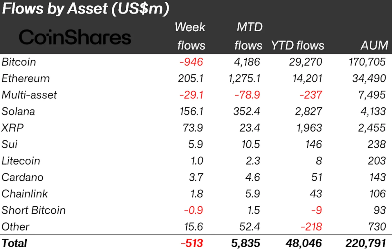 این در حالی است که محصولات سرمایهگذاری رمزارزی در سطح جهانی در همین بازه زمانی با خروج خالص ۵۱۳ میلیون دلاری مواجه شدهاند. بیشترین خروج نقدینگی مربوط به بیت کوین بوده که با ۹۴۶ میلیون دلار خروج در صدر جدول قرار دارد؛ در نتیجه، سولانا تنها دارایی بزرگ بازار است که همچنان در حال جذب سرمایه نهادی است.