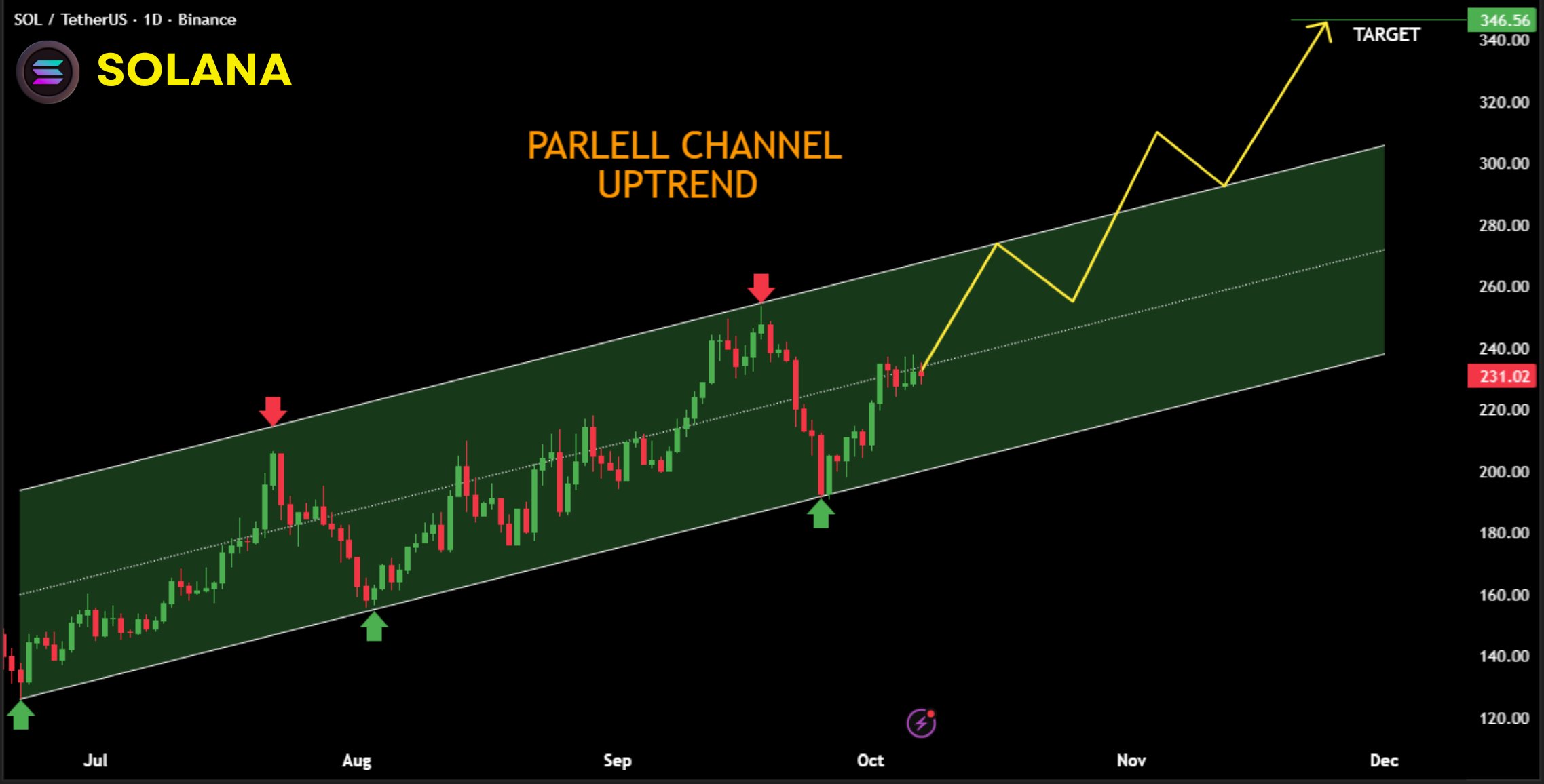 تحلیلگر دیگری با نام NekoZ نیز بر اساس الگوی کانال صعودی موازی، هدف مشابهی در محدوده ۳۴۶ دلار برای SOL در نظر گرفته است. به گفته او، ساختار تکنیکال فعلی با روندی تدریجی اما مطمئن در حال تقویت است.