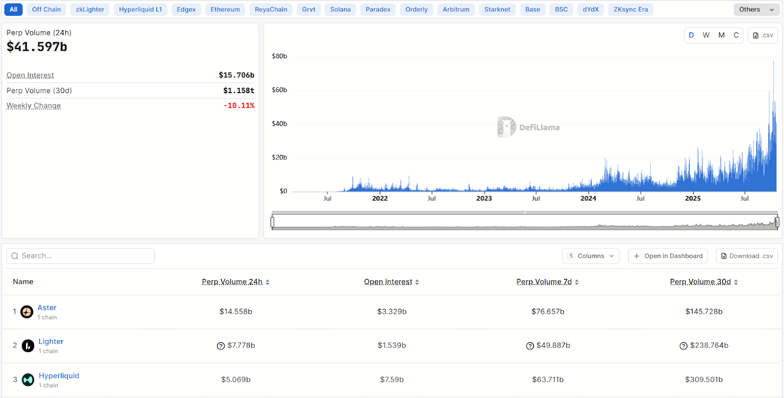 در همین حال، استر که روی زنجیره BNB فعالیت میکند، موفق شده است با ثبت حجم معاملات روزانه ۱۴.۵ میلیارد دلار، جایگاه نخست صرافیهای پرپچوال غیرمتمرکز را به دست آورد؛ اگرچه، مجموع معاملات ۳۰ روزه هایپرلیکویید با رقم ۳۰۹ میلیارد دلار، همچنان دو برابر استر گزارش شده است.