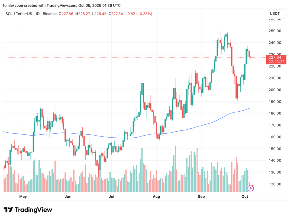 به گزارش میهن بلاکچین، این روند صعودی در ابتدای ماه اکتبر نیز ادامه یافت و سولانا تنها در چند روز نخست ماه بیش از ۱۰٪ افزایش قیمت را تجربه کرد. با این حال، در پایان هفته گذشته این رمزارز با اصلاحی روبهرو شد و سطح ۲۳۰ دلار را از دست داد؛ به گفته تحلیلگران ممکن است این اصلاح صرفاً یک توقف موقت در مسیر صعودی سولانا باشد.