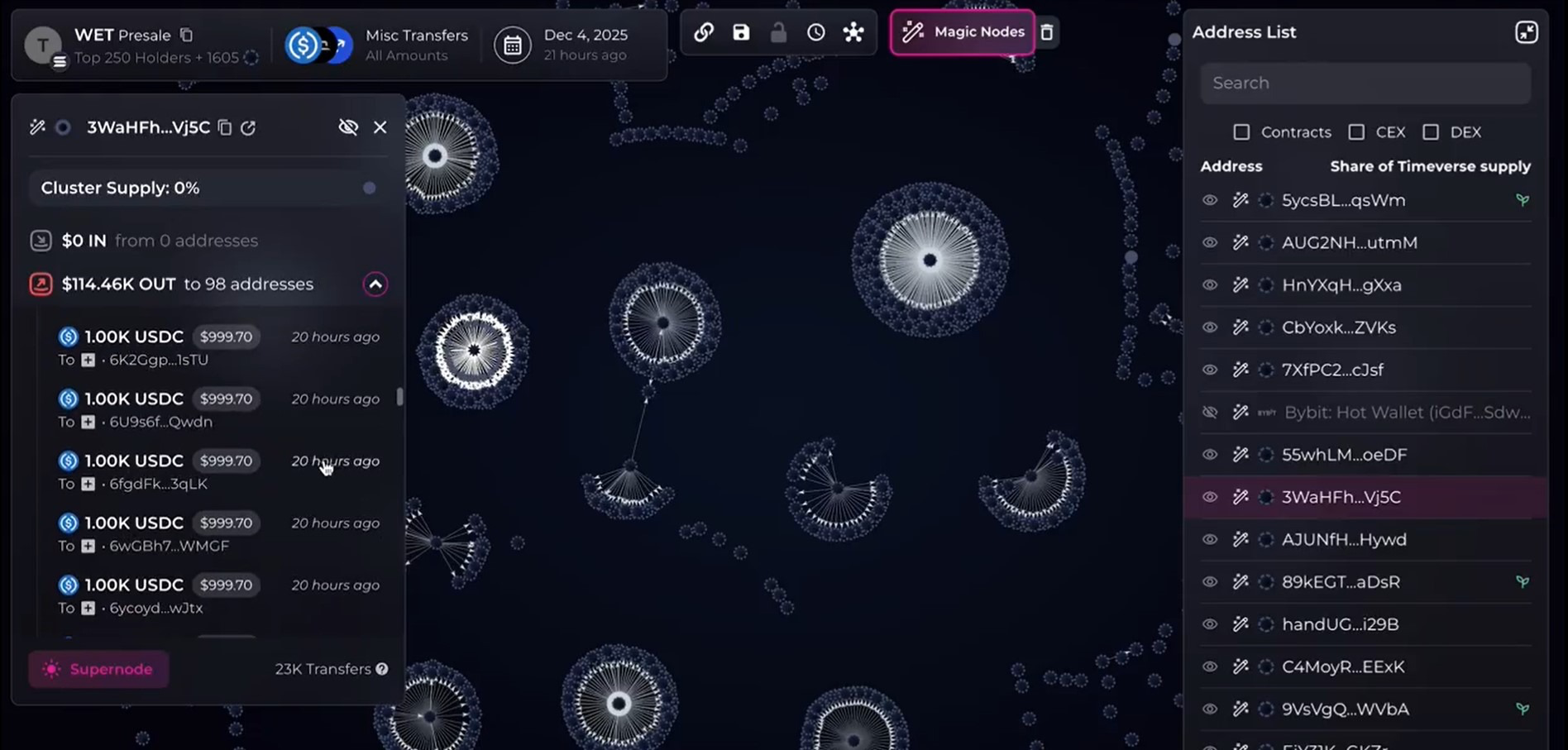 پلتفرم تحلیل آنچین بابلمپز (Bubblemaps) روز جمعه اعلام کرد که عامل پشت این حمله را شناسایی کرده است. این شرکت در طول پیشفروش ساختار غیرعادی خوشههای کیف پول را بررسی و اشاره کرد که دستکم ۱,۱۰۰ مورد از ۱,۵۳۰ کیف پول شرکتکننده الگوهای یکسانی در تأمین مالی و فعالیت داشتند.