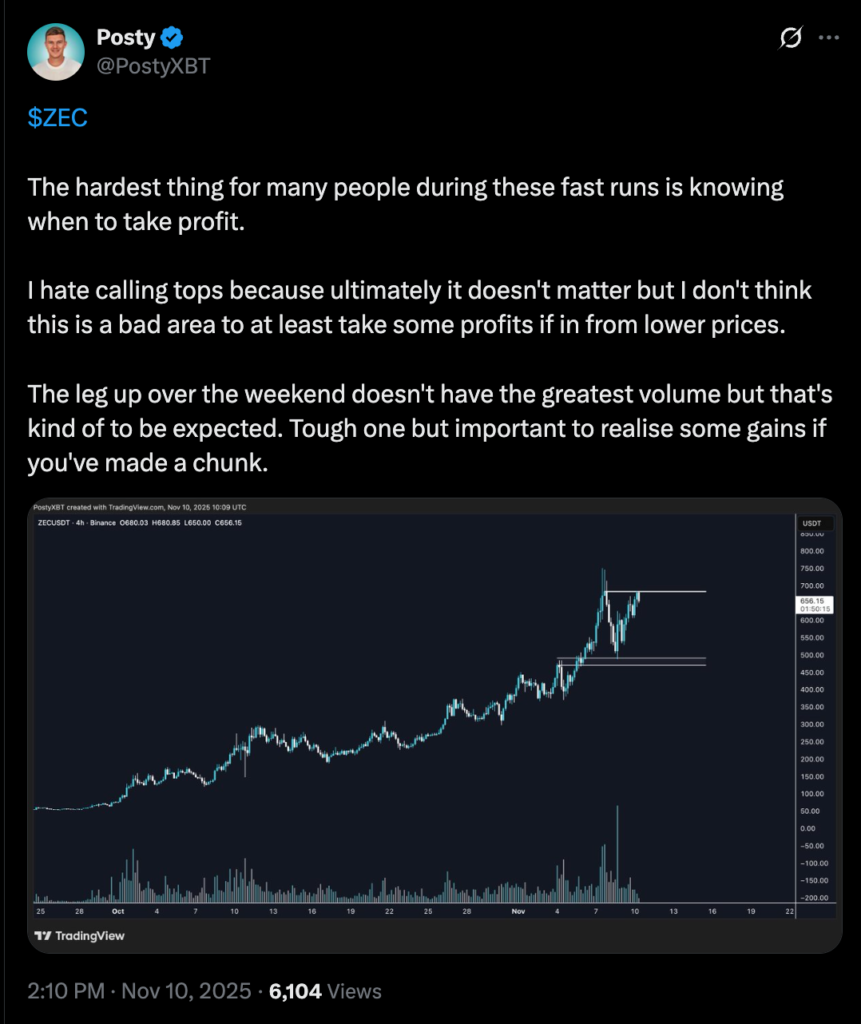 یکی از تحلیلگران مشهور بازار آلت کوین‌ها با نام مستعار آلت‌کوین شرپا (Altcoin Sherpa) در پستی نوشت که زی‌کش اکنون یکی از بهترین موقعیت‌ها برای فروش است و احتمال دارد این روند صعودی با پایانی خشن خاتمه یابد.