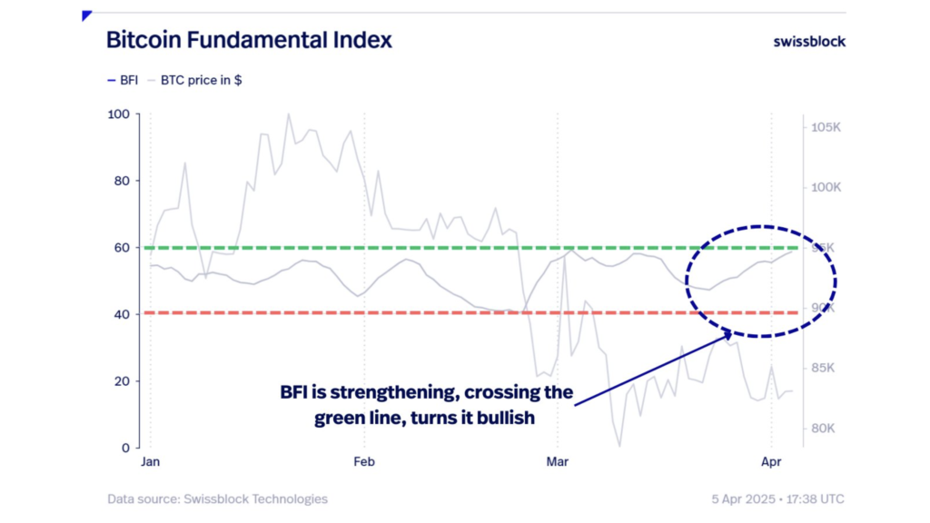 به گزارش میهن بلاکچین، Swissblock در پلتفرم اجتماعی X اعلام کرده که به‌دقت شاخص فاندامنتال بیت کوین (BFI) را زیر نظر دارد؛ شاخصی که ترکیبی از نقدینگی و رشد شبکه را در بر می‌گیرد.