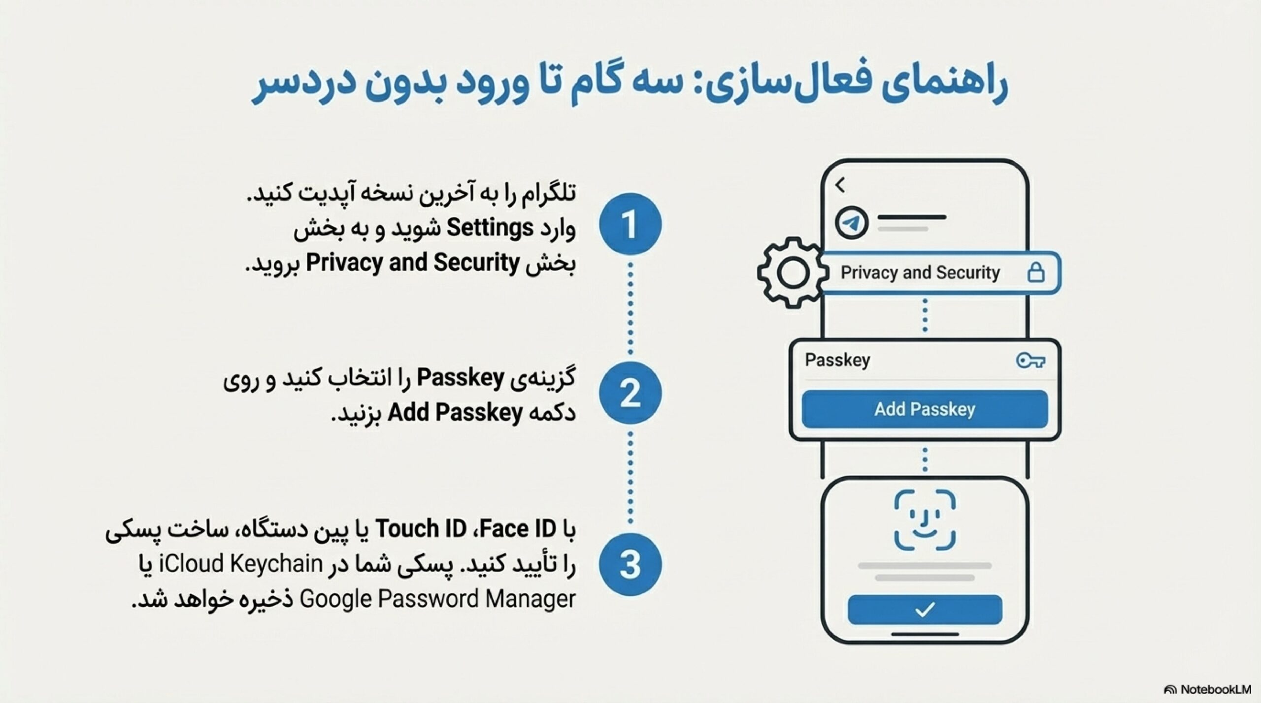 تلگرام با اضافه کردن فناوری پسکی به iOS و اندروید یک قدم دیگر به سمت دنیای بدون پسورد و بدون SMS برداشته است. پشت صحنه این قابلیت، سالها کار روی استانداردهای FIDO و WebAuthn، iCloud Keychain و Google Password Manager قرار دارد تا بتوانید تنها با یک لمس روی سنسور یا یک نگاه به دوربین، وارد حساب خود شوید و نیازی به کدهای پیامکی و رمزهای طولانی نداشته باشید.