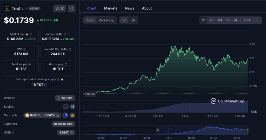 داستان از اینجا شروع میشود که یکی از اعضای جامعه BNB Chain، برای ساخت ویدیویی آموزشی درباره چگونگی ساخت میم کوین در پلتفرم Four.meme، این توکن را راهاندازی میکند. توکن TST صرفاً به عنوان دارایی نمایشی در این ویدئو ایجاد شد و قرار نبود برای خرید و فروش عمومی مورد استفاده قرار گیرد.