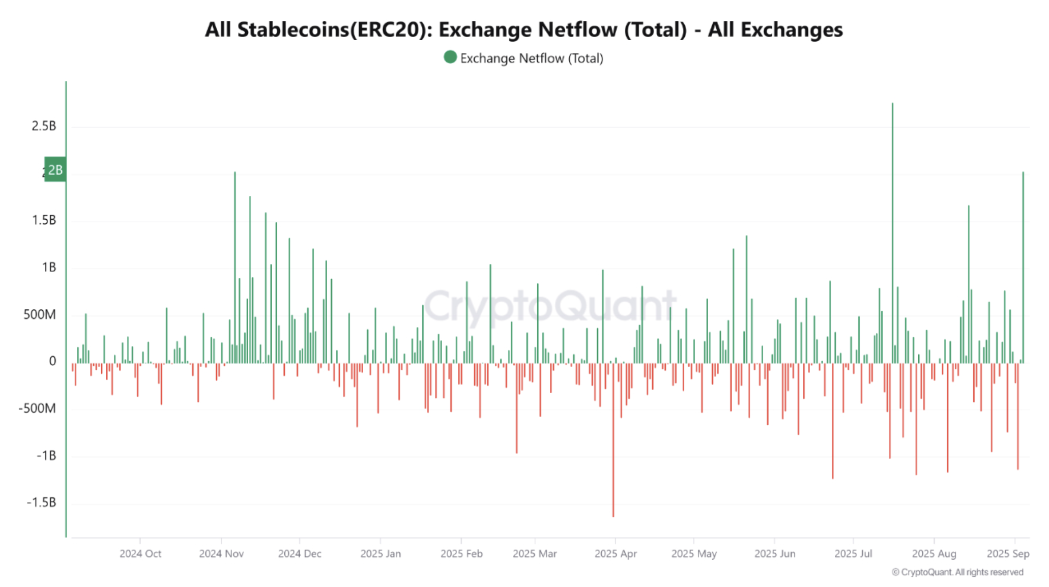 دادههای آنچین نشان میدهند که بازار از یک روز قبل خود را برای چنین نتیجهای آماده کرده بود. ورود استیبل کوینها به صرافیها بیش از ۲ میلیارد دلار افزایش یافت و این موضوع نشان میدهد که معاملهگران نقدینگی خود را آماده ورود به بازار بیت کوین و اتریوم کردهاند.