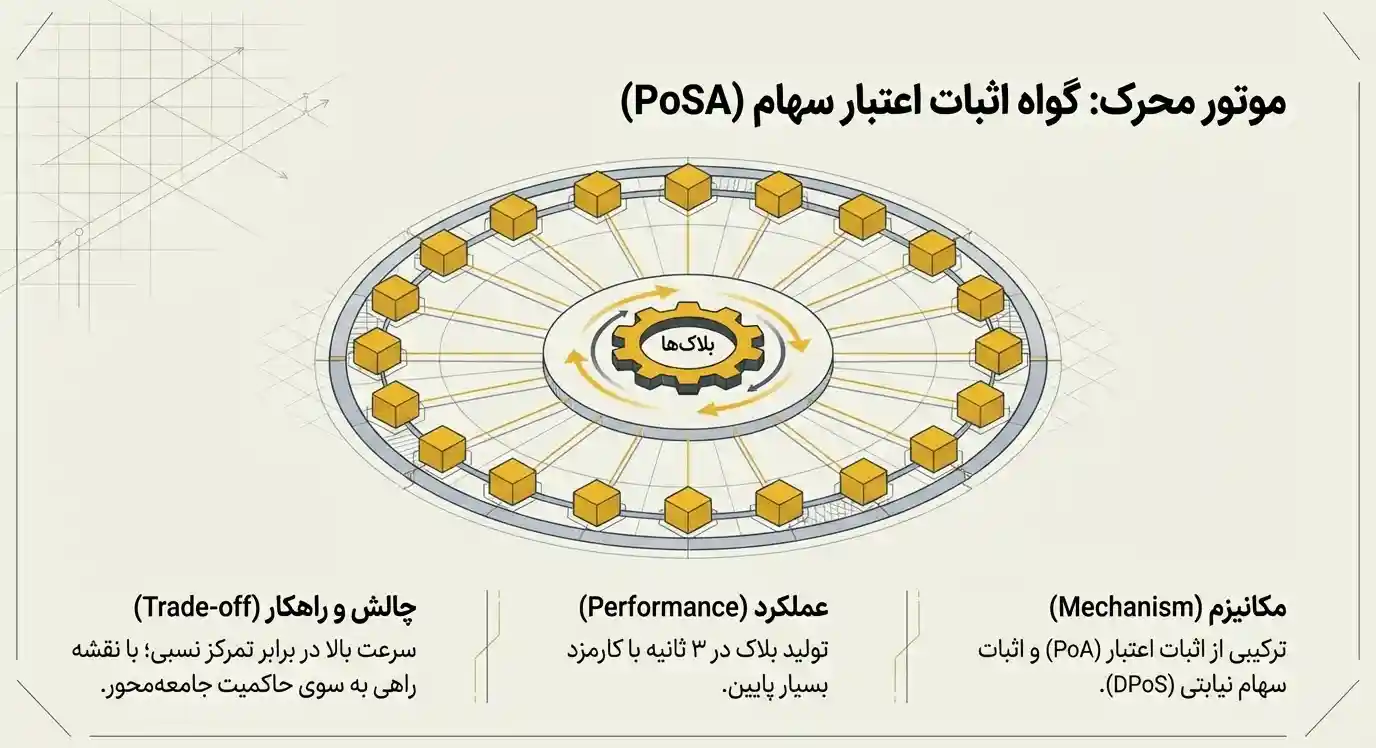 در این مدل، اعتبارسنجها بر اساس مقدار بایننس کوین استیکشده و رأیگیری انتخاب میشوند. آنها مسئول تولید بلاکها و تأیید تراکنشها هستند. این ساختار باعث میشود زمان تولید بلاک کوتاه باشد و تراکنشها در عرض چند ثانیه تأیید شوند؛ موضوعی که تجربه کاربری را نسبت به برخی شبکههای شلوغ از جمله بیت کوین بهبود میدهد.