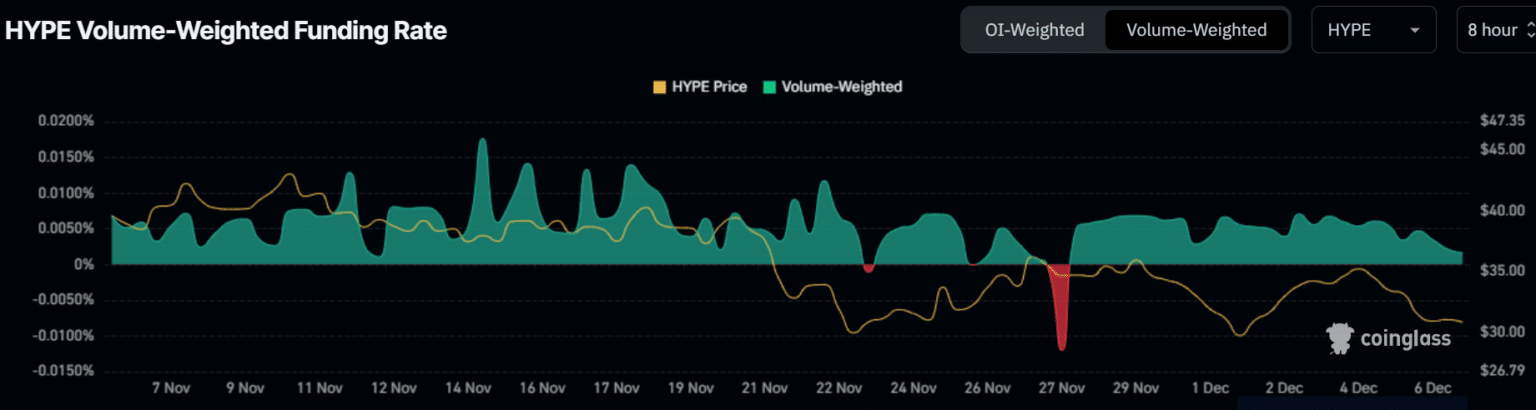 در روزهای اخیر فاندینگ ریت کاهش یافته و این نشان میدهد که احساسات کوتاهمدت معاملهگران به سمت نزولی متمایل شده است. با این حال، سمت تقاضا نیز تقویت شده و ادغام هایپرلیکویید استراتژیز (Hyperliquid Strategies) با سونت (Sonnet) میتواند تقاضای جدیدی از سمت خزانه پروژه ایجاد کند.