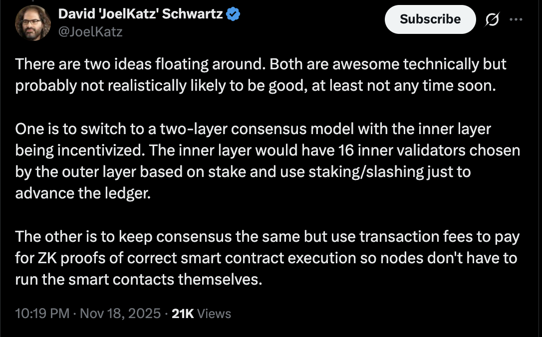 دیوید شوارتز (David Schwartz)، یکی از معماران اصلی XRPL، نیز وارد این گفتگو شده و دو ایده آزمایشی را که در جامعه مهندسی مطرح است، توضیح داده است.