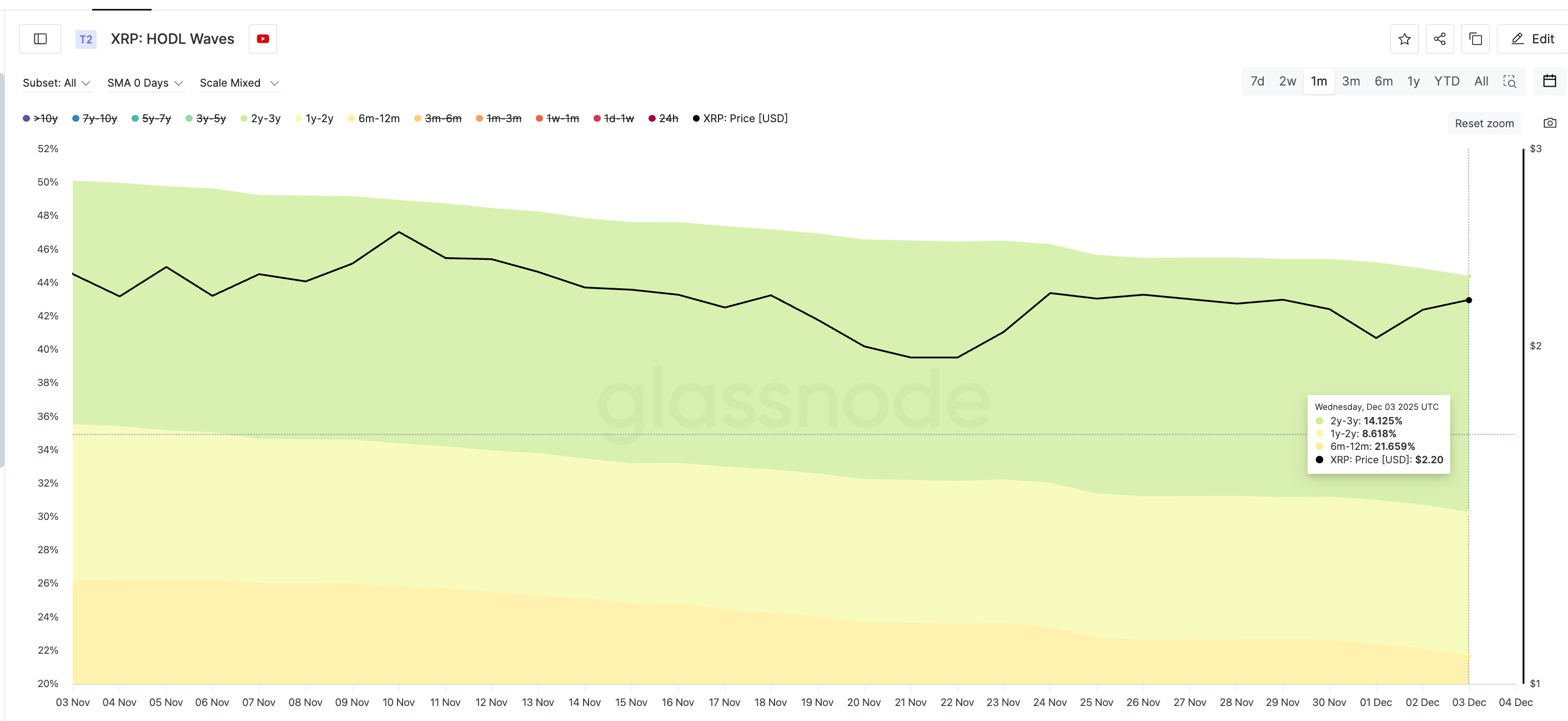 به همین دلیل است که حتی موج خرید اخیر نهنگها نیز نتوانست قیمت XRP را بالا ببرد. نهنگها در حال افزایش موجودی خود هستند اما خروج مداوم هولدرهای قدیمی، همچنان تقاضا را خنثی میکند. تا زمانی که این گروههای بلندمدت به ثبات نرسند، دورمانسی بهتنهایی نمیتواند منجر به یک حرکت قوی شود.