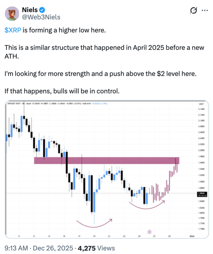 عیسی پرز (Jesus Perez)، مدیرعامل شرکت پوزیدونیا۲۱ کپیتال پارتنرز (Posidonia21 Capital Partners)، نیز دیدگاهی مشابه با کنیس دارد. او معتقد است که ریپل ممکن است با ورود به سال جدید، بیشتر شاهد حرکت خنثی و نوسانی باشد تا اینکه یک روند تازه را آغاز کند.