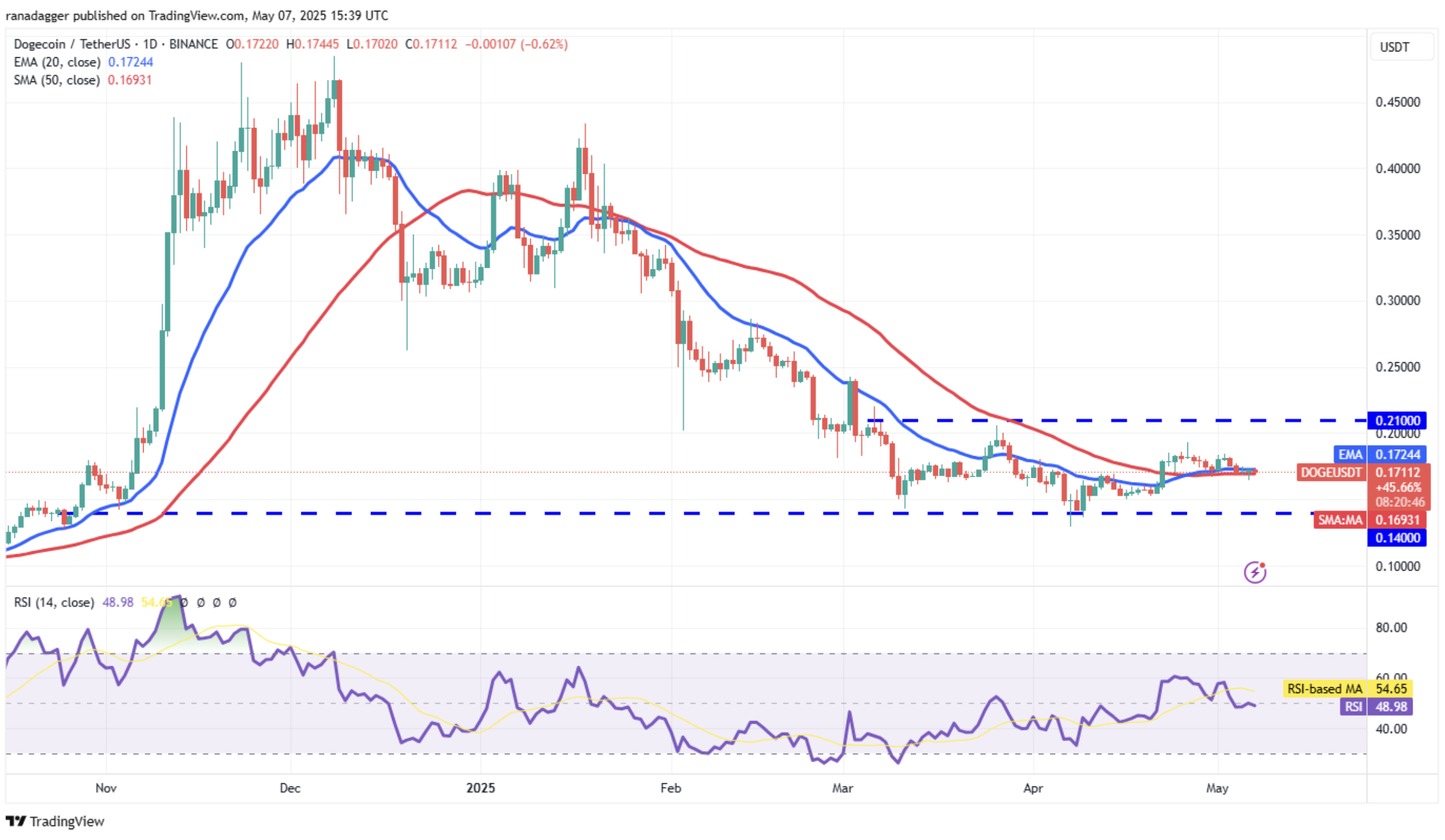 نمودار روزانه قیمت دوج کوین (DOGE) – منبع: TradingView